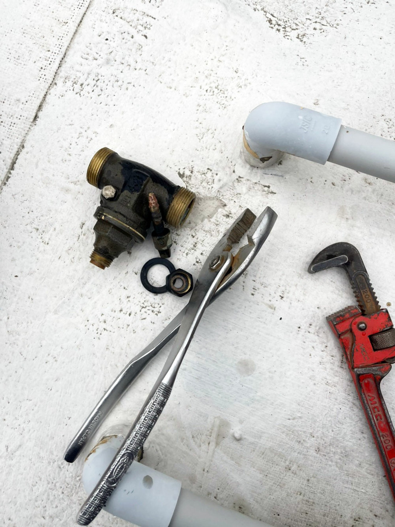 ▼發現是原本的存水彎,排水時阻塞了,師傅就先將水管給拆解下。
